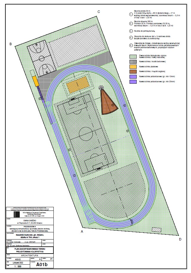 Dzięki realizacji projektu powstanie nowoczesna baza sportowa, zwiększająca komfort i możliwości uprawiających dyscypliny lekkoatletyczne. Poniżej plan zagospodarowania wspomnianego terenu