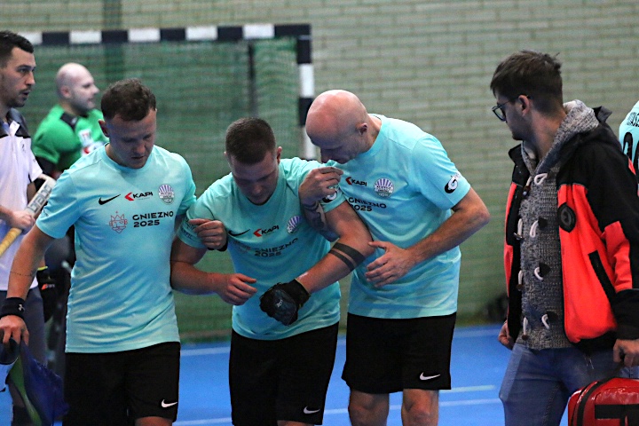Do końca meczu Stella – Politechnika zostało już bardzo niewiele. Mecz był nerwowy, bo przy remisie 2-2, w halowym hokeju wystarczy kilka sekund i ułamek dobrej sytuacji, by padła bramka. W zamieszaniu pod własnym polem karnym Poltaszewski upadł, a na niego spadł jeden z rywali. Od razu widać było, że doszło do czegoś poważnego, bo zawodnik leżąc, złapał się za głowę i nie wstawał z boiska przez dłuższą chwilę. Zrobił to dopiero w objęciach kolegów z zespołu. – Nie wiem co w tej chwili jest. Wiem, że niewiele brakowało, a noga byłaby złamana. W ostatniej chwili odsunąłem ją, bo tak byłoby chyba po wszystkim – mówił nam już po meczu. Jak tylko dowiemy się więcej, napiszemy niezwłocznie.