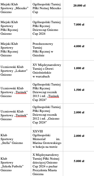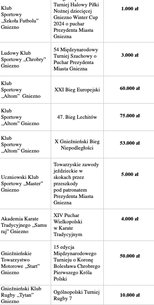 Organizowanie rozgrywek w ligach państwowych dla gnieźnieńskich klubów – kwota 1.750.000