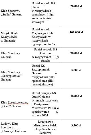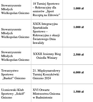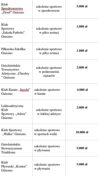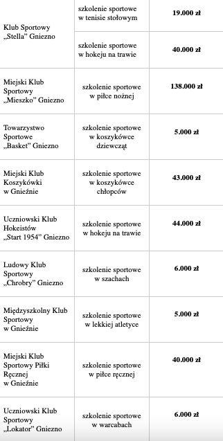 Jak zwykle miasto rozdzieliło dotację na trzy koszyki: