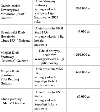 Najwyższą ligową dotację otrzyma MKS – 600.000 zł, Start Gniezno zainkasuje z Ratusza 0,5 miliona złotych, trzeci jest Mieszko z kwotą ponad 330.000zł. Szczegóły na grafikach poniżej