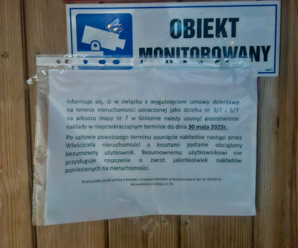 W miejscu gdzie funkcjonowało biuro, pojawiła się ostatnio kartka, której nadawcą jest Urząd Miejski. Jak można przeczytać, w związku z wygaśnięciem umowy, Ratusz prosi o usunięcie wszystkich instalacji. Pełna treść na zdjęciu.