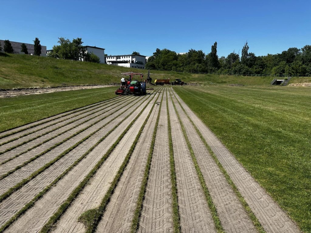 Nową nawierzchnię w całości przygotuje czerniejewska firma Magma Murawy, która dba o „zielony dywan” w tym miejscu od dłuższego czasu. Nie ma więc obaw o to jaką jakość będzie miała, bo boisko w Gnieźnie chwalone jest przez wszystkie zespoły, które przyjeżdżają do pierwszej stolicy. Dodajmy, że nowe boisko dodatkowo zmieni nieco swoje wymiary, będzie nieco dłuższe, oraz zostanie delikatnie przesunięte w kierunku skarpy. Wszystko zostanie podporządkowane czterotorowej bieżni lekkoatletycznej.