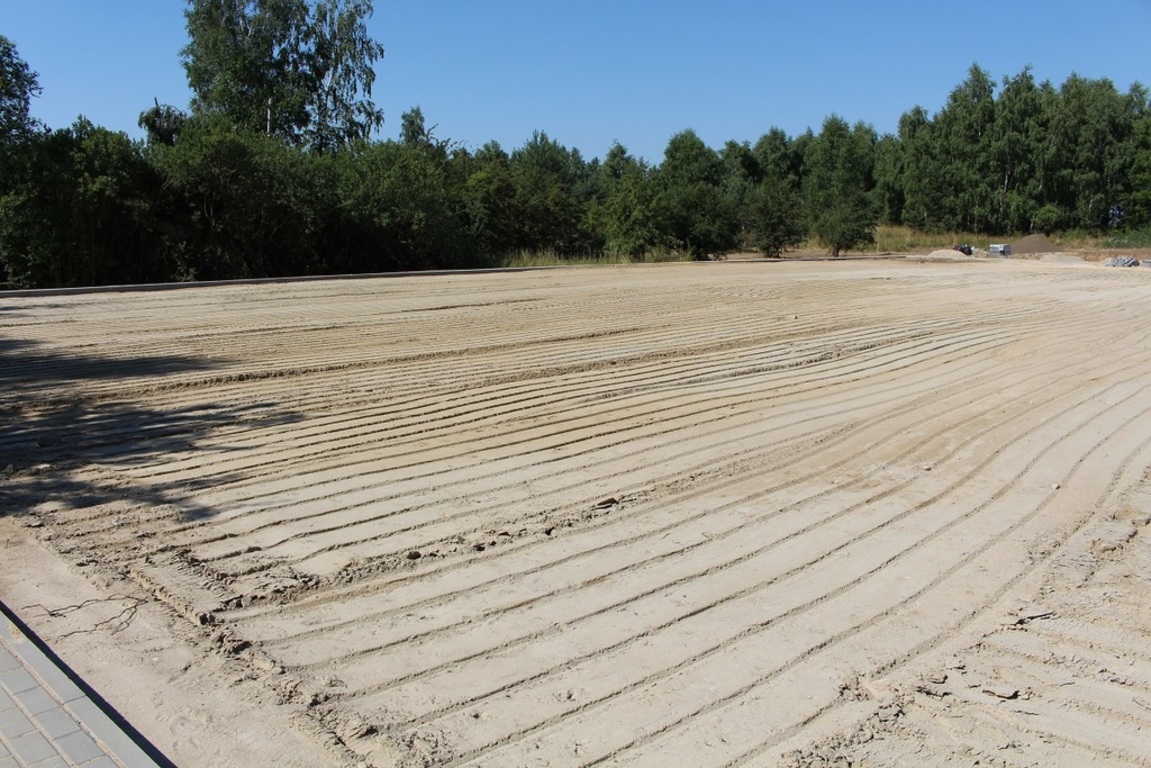 • wykonanie nawierzchni boiska – trawa naturalna siana na podłożu z mieszanki torfu, ziemi i piasku – 1860 m2 (30×62 m),