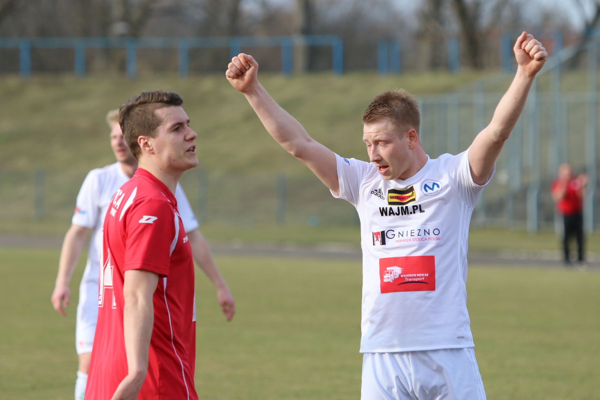 Piłkarze gnieźnieńskiego Mieszka wygrali dzisiaj po raz dwudziesty siódmy w tym sezonie i pogrążyli tym samym obornicką Spartę pokonując ją 4:2. O wygranej biało-niebieskich zdecydowało pierwszych dziewięć minut po przerwie. Swoją drogą mieliśmy nosa w redakcji, bo zapowiadając ten mecz, daliśmy dokładnie to samo archiwalne zdjęcie Pawlaka z uniesionymi rękoma 🙂