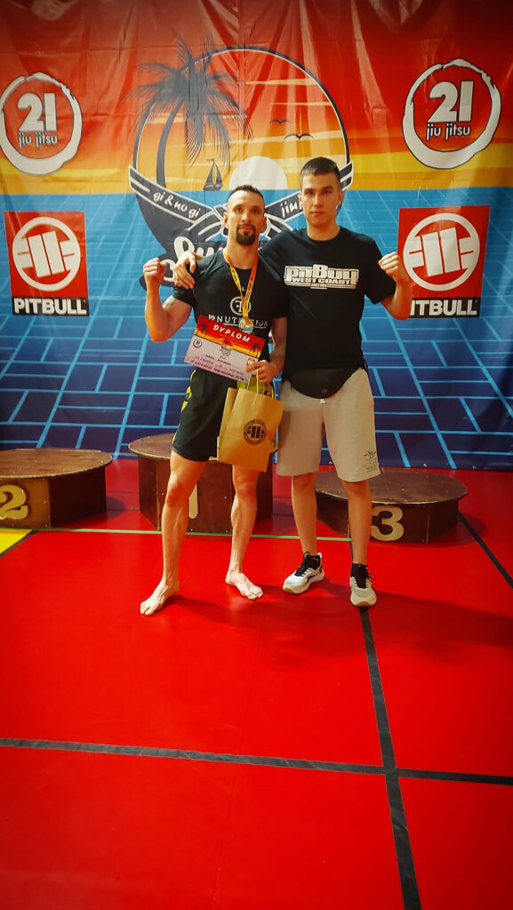 Jeden złoty, dwa srebrne i jeden brązowy – to dorobek zawodników Walki Gniezno z Summer Open 2023 Gi & No Gi Jiujitsu. Indywidualnie n najwyższym stopniu podium stanął Łukasz Wiśniewski (na zdj. białe pasy dorośli). Piotr Rzymyszkiewicz zdobył srebro i brąz (purpurowe pasy dorośli), a junior Franek Wiesner srebro