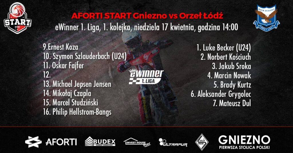 W pierwszy dzień świąt wielkanocnych, niedzielę 17 kwietnia AFORTI Start Gniezno zmierzy się z Orłem Łódź. Dzisiaj poznaliśmy awizowane zestawienie na ten pojedynek.