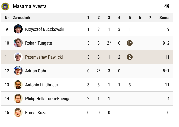 Średnio poszło Philipowi Hellstroem-Baengsowi, który mecz zakończył z 4 oczkami, a koszmarny występ zaliczył Ernest Koza. Widać, że problemy zawodnika nie dotyczą tylko eWinner 1.ligi, bo Koza zaliczył same „śliwki”.