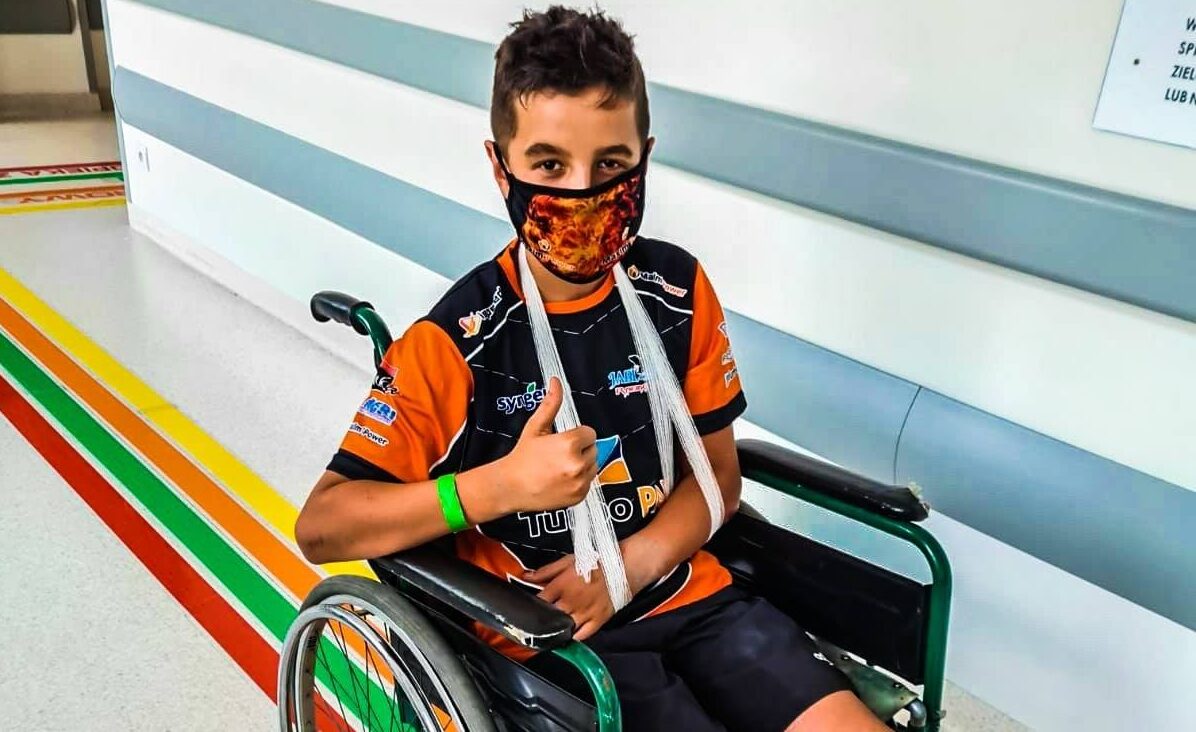 Jabłoński nie był zdolny do dalszej jazdy. Wizyta w szpitalu wykazała, że młody zawodnik Startu Gniezno nabawił się poważnej kontuzji – złamania obu kości przedramienia.