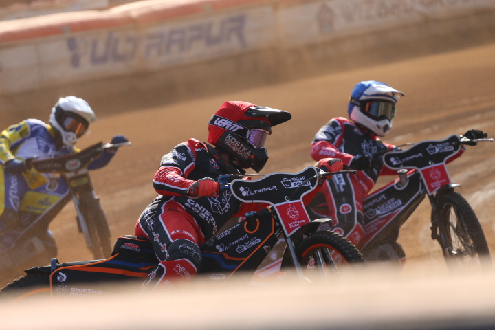 Ultrapus Start Gniezno pokazał dziś cały swój potencjał, którego nie mógł dotychczas wykorzystać. Powrót do drużyny Josha Pickeringa tchnął w „Orły” dodatkową moc, która dziś była widoczna gołym okiem. KOlejarz który niedawno był w stanie zremisować na wyjeździe w Rzeszowie, dziś był totalnie bezradny. Potwierdził nam to lider ekipy, Oskar Polis. – Nie wiem co tutaj się dziś działo – mówił wyraźnie skonsternowany. – Wiedziałem, że tu będzie ciężko, ale że aż tak ciężko, to absolutnie nie. Błądziliśmy okrutnie. Niby na próbie toru wyglądało to dobrze, ale później to była masakra. Jeździłem z ustawieniami w górę i w dół i nic nie mogłem znaleźć. Zresztą wszyscy tak wyglądali. My zresztą wiedzieliśmy dokładnie jak tu będzie wyglądać, to że jest twardo to wiadomo. Przywiozłem ze sobą silnik, który mi fajnie spisywał się na twardych torach, ale nawet on nie był w stanie nic zrobić. Chcąc robić dwucyfrówki, sprzęt musi pomagać, a on dziś przeszkadzał wręcz – zakończył Polis.