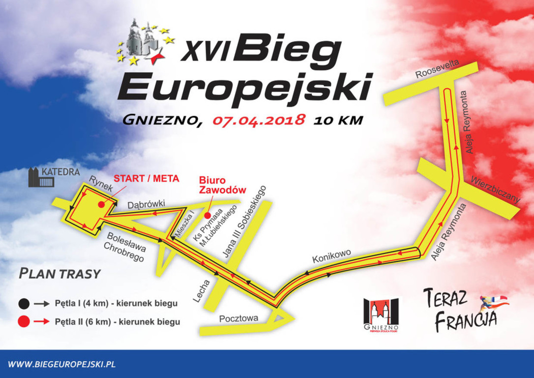7 kwietnia o godz. 17:00 na gnieźnieńskim Rynku wystartuje XVI edycja Biegu Europejskiego. Impreza cieszy się dużym zainteresowaniem biegaczy. 10-kilometrowy Bieg Europejski to jedna ze sportowych wizytówek Gniezna. Impreza odbywa się od 15 lat i z roku na rok przyciąga coraz więcej uczestników nie tylko z Pierwszej Stolicy Polski, ale praktycznie z całego kraju. Gnieźnieńska „dycha” cieszy się dużą popularnością wśród biegaczy również ze względu termin zawodów, który umożliwia doskonałe przetarcie i sprawdzenie formy przed rozgrywanymi tydzień później kwietniowymi maratonami w Gdańsku i Łodzi, ORLEN Warsaw Marathon oraz półmaratonem poznańskim.