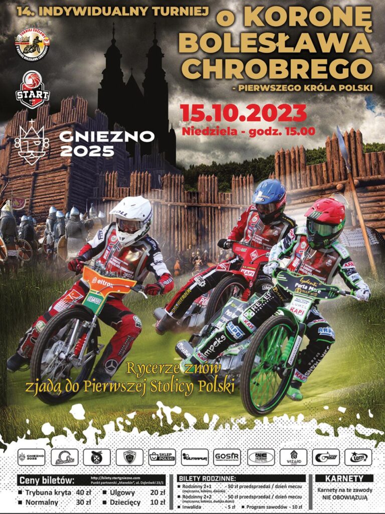 14.edycja Indywidualnego Turnieju o Koronę Bolesława Chrobrego odbędzie się w niedzielę, 15 października br. poinformował Start Gniezno. Na kibiców czekają 23. wyścigi turnieju głównego oraz cztery mini-turnieju „Młode Orły Startu” z udziałem najmłodszych wychowanków czerwono-czarnych. NIe znamy niestety jeszcze obsady zawodników, która ma być podana w najbliższych dniach. Wiadomo, że początek zawodów zaplanowano na 15.00